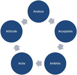 Aanpak voor verandering op basis van 5 A’s: Analyse, Acceptatie, Ambitie, Actie en Athentiek